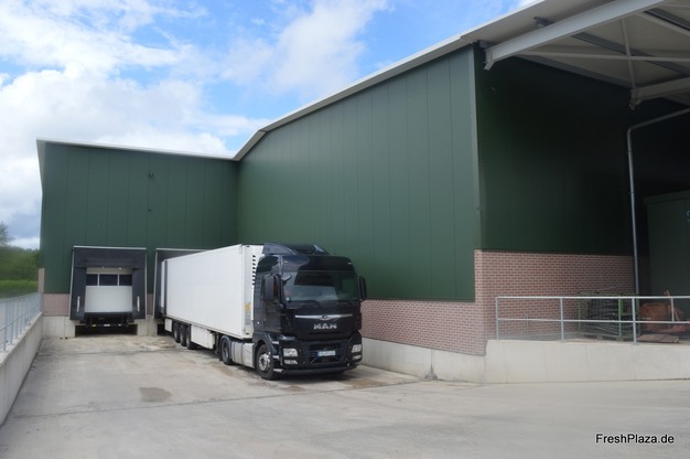 Vue sur le hall de tri et de stockage mis en service en 2021, équipé notamment d'un système de refroidissement à l'ammoniac et de panneaux photovoltaïques. Du fait du refroidissement sous vide, les besoins en électricité sont élevés, mais ils sont couverts à hauteur de 50 % par l'énergie solaire, précise Stoffers