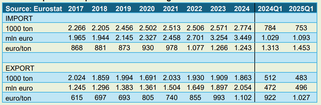 Les importations de fruits frais sont restées relativement stables au fil des ans. L'année dernière, elles se sont élevées à 1,75 million de tonnes. Les exportations de fruits frais ont été faibles, avec 1,06 million de tonnes l'année dernière. Il y a quelques années, les exportations de fruits frais s'élevaient à 1,3 million de tonnes.