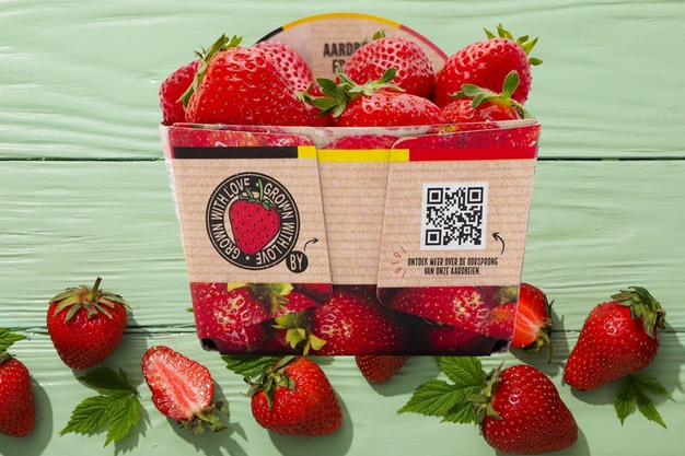 Grâce à un QR code figurant sur l'emballage, les clients peuvent accéder à une page dédiée sur www.delhaize.be, où ils ont alors accès à toutes les informations sur l'origine des fraises, les méthodes de culture et l'histoire du producteur local : Royakkers, qui cultive exclusivement les fraises pour Delhaize.