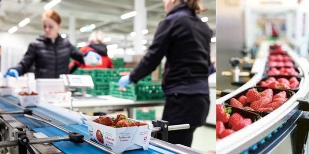 Aperçu du conditionnement et de l'emballage des fraises régionales sur le site d'Egnach