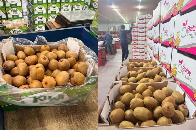 La récolte des variétés précoces commencera dès la semaine prochaine, mais celle des variétés plus tardives se poursuivra pendant plusieurs mois, explique Tsinoglou. "Les variétés de kiwi les plus précoces sont le kiwi d'été et le green light, et leur récolte commence à la fin du mois d'août. À partir du 25 août, les kiwis seront disponibles à l'exportation. La variété suivante est le Tsechelidis, dont les récoltes commencent la deuxième semaine de septembre, une fois que les niveaux de brix ont atteint 6,2. La variété suivante et principale est le kiwi Hayward, dont la récolte commence le 15 octobre. Il existe d'autres variétés, comme les kiwis jaunes (Soreli) ou rouges, mais leur production n'est pas aussi répandue en Grèce, bien que leur culture ait commencé à augmenter de manière plus intensive au cours des trois ou quatre dernières années".
