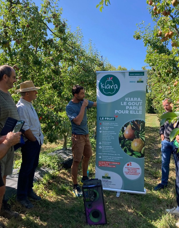 La nouvelle variété de poire Kiara®, issue d'un croisement entre Harrow Sweet et Pierre Corneille présente un « excellent comportement au feu bactérien, un des axes principaux de recherche dans les travaux menés par l'Inrae », explique Claire Thouminot. Cette nouvelle poire qui se positionne sur un créneau précoce, à l'instar de la variété Williams, est « idéale pour les producteurs qui souhaitent se positionner dès le début de la saison ».