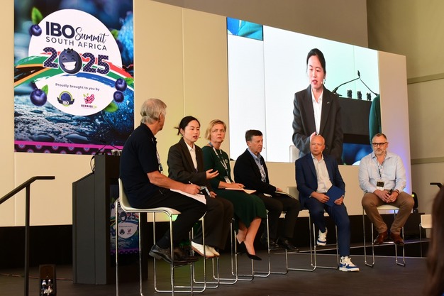© Carolize Jansen | FreshPlaza.frDébat sur la production mondiale animé par Stephen Taylor avec Amelie LIu de Joy Wing Mau, Dominika Kozarzewska de Polskie Jagody, Kasey Cronquist de US Highbush Blueberry Council, Andres Armstrong de Chilean Blueberry Council et George Jesset de Costa