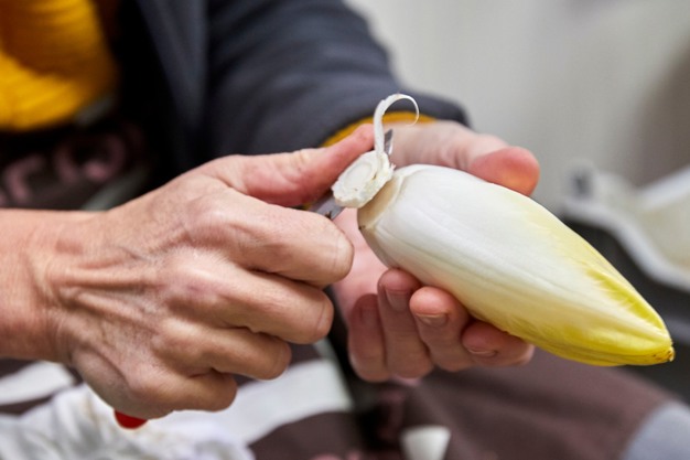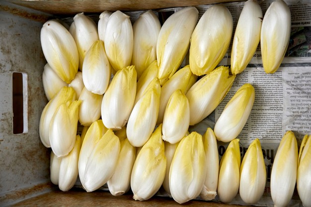 Depuis environ deux semaines, la nouvelle saison des endives cultivées en plein air a repris en Belgique. Bien que la chicorée hydroponique soit aujourd'hui disponible toute l'année, le moment où ce produit saisonnier par excellence revient sur les étals est toujours très attendu. « La demande a déjà bien repris, mais l'offre est encore limitée », explique Herman Lion de Lathouwers en Co, qui propose l'endive sous sa propre marque Deli D'or, entre autres.