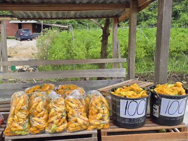 © Pieter Boekhout | FreshPlaza.frSeaux et sacs de piments Madame Jeanette proposé à 2,20 € en bord de route