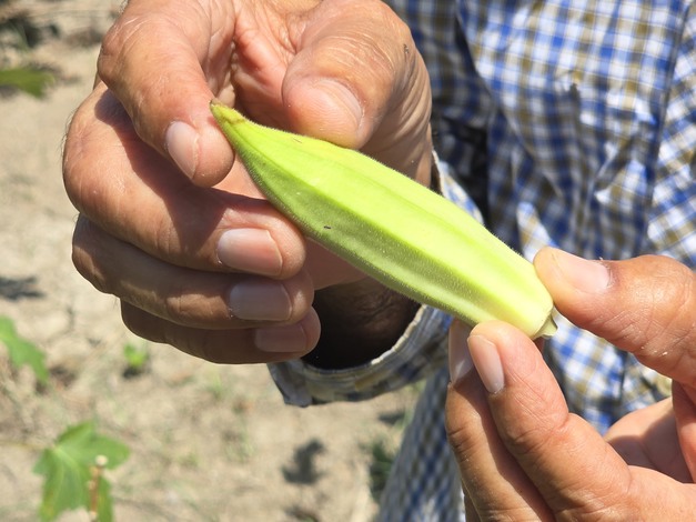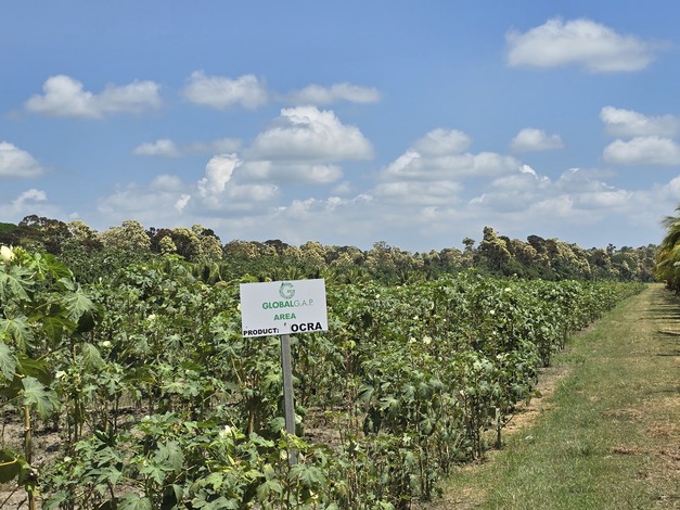 Le gombo est l'un des principaux produits d'exportation. « Il est très populaire aux Pays-Bas, en Allemagne et au Royaume-Uni. Saviez-vous que la croûte bien bronzée de certains hamburgers contient de la poudre de gombo ? Nous cultivons ce légume sur 20 ha, ce qui n'est pa rien ! Pour planter 10 ha, nous y passons une semaine à 8 personnes. C'est pourquoi nous cherchons un moyen de le faire mécaniquement. » Les semences proviennent d'Afrique via les Pays-Bas, la récolte commence après seulement deux mois et se poursuit jusqu'à neuf mois après la plantation.
