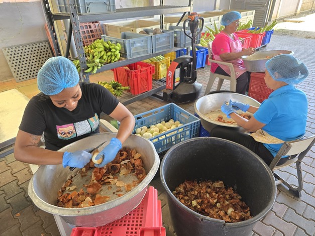 La liste des cultures de Gopex se lit comme un menu exotique : des tomates Cobra aux patates douces de toutes les couleurs, en passant par le manioc, l'anthroewa, le gombo, les haricots longs, la papaye et, bien sûr, la très piquante Madame Jeanette. « Nous essayons de cultiver une gamme large. Certains produits, comme le gombo ou les haricots longs, peuvent être récoltés toute l'année. D'autres, comme la mangue ou la knippa, sont saisonniers. »