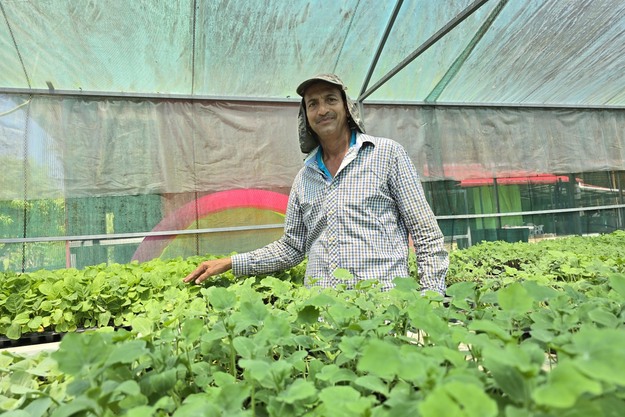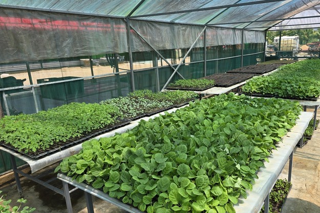 Certaines cultures nécessitent des soins particuliers. « Si l'on ombrage trop le tayer, on obtient surtout de longues tiges et peu de feuilles. Dans la serre, nous utilisons donc le plus intelligemment possible un filet d'ombrage. Après de nombreuses années, nous savons mieux comment construire nos serres, car le vent et la pluie peuvent faire des ravages ici. »