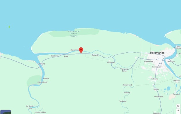 © Google mapsUne heure de route relie Gopex à Paramaribo