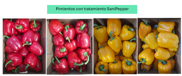 L'étude qu'elles ont menée sur les poivrons rouges et jaunes a conclu qu'après désinfection, rinçage ultérieur et traitement avec SaniPepper, l'infection par Botrytis a été réduite de 48,1 % et l'infection par Erwinia a été inhibée de 45,5 %. Par conséquent, et comme le souligne Sanifruit, la recommandation idéale serait de laver et d'utiliser un désinfectant contrôlé, puis d'appliquer SaniPepper.