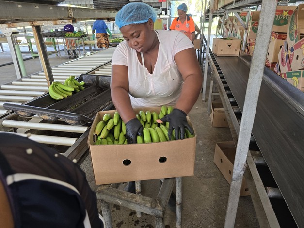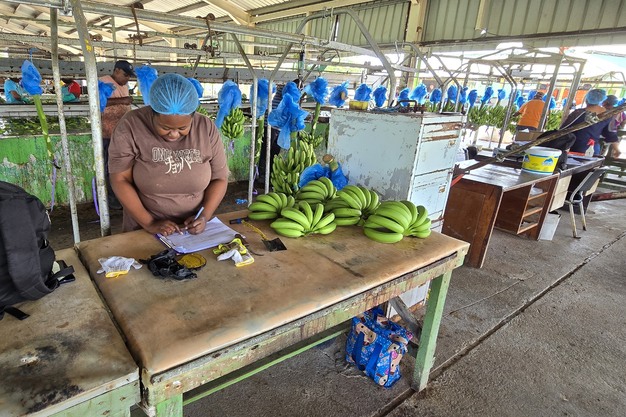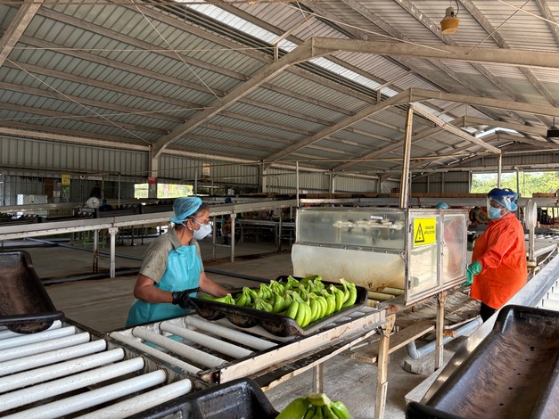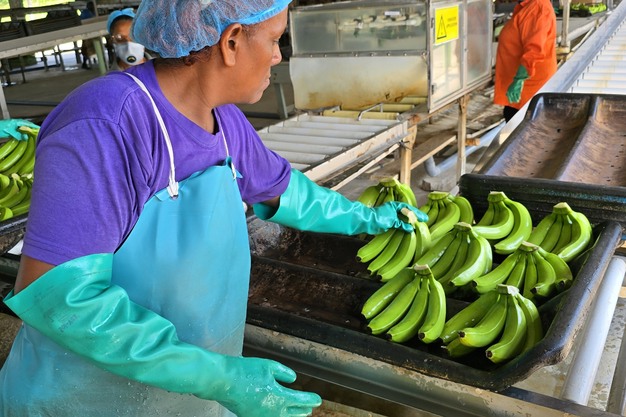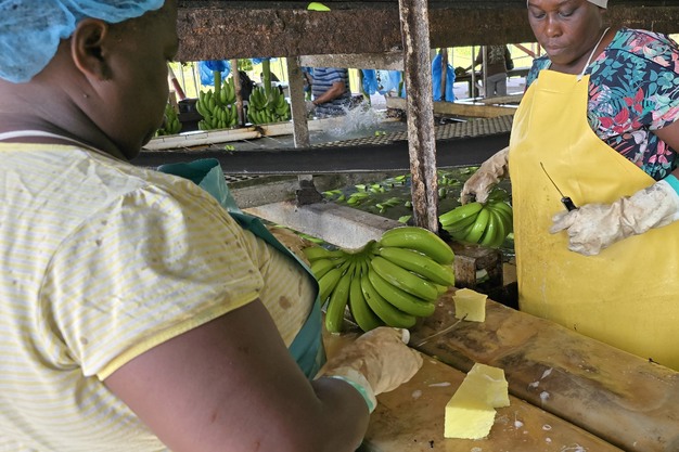 © Pieter Boekhout | FreshPlaza.frLes employées vérifient la longueur et la qualité et divisent en unités de 4 ou 5 doigts, selon le client. Tout ce qui est destiné à l'exportation doit mesurer plus de 20 cm de long, les bananes plus courtes étant destinées au marché intérieur et à la transformation en chips ou en purée