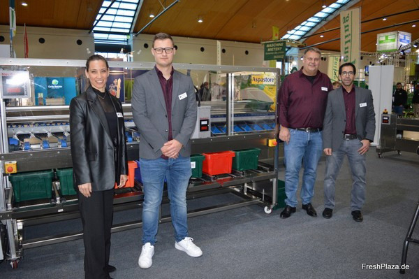 Présenté à l'état de prototype lors de l'expoSE 2023, l'Aspastore a été perfectionné tout au long de la saison 2024, puis testé intensivement sur le terrain. Ces essais concluants ont permis de lancer la production en série, et les premiers modèles ont été livrés à temps pour la saison 2025. Sur le terrain, la machine a pleinement convaincu : elle est capable de remplir jusqu'à 800 kg d'asperges triées par heure, soit l'équivalent du travail de trois employés.