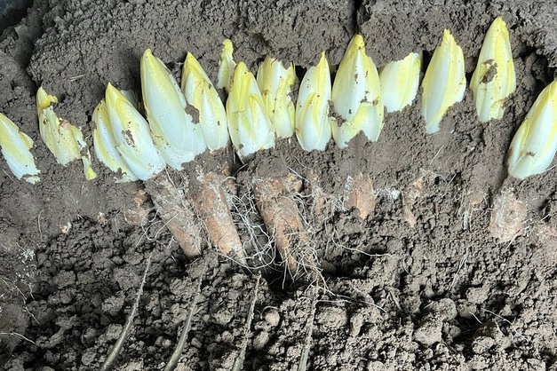 Van Baet cultive ce produit du terroir sur environ 3 hectares. « Actuellement, nous exploitons trois hectares de racines, ce qui permet de produire 40 à 50 couches d'endives. L'hiver, nous travaillons beaucoup à retourner les chicons dans le sol. Une couche de 8 x 2 m signifie trois mètres cubes de terre qu'il faut déplacer à chaque fois. Ce travail est beaucoup moins important chez les producteurs brabançons. »