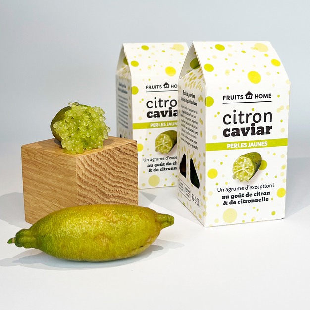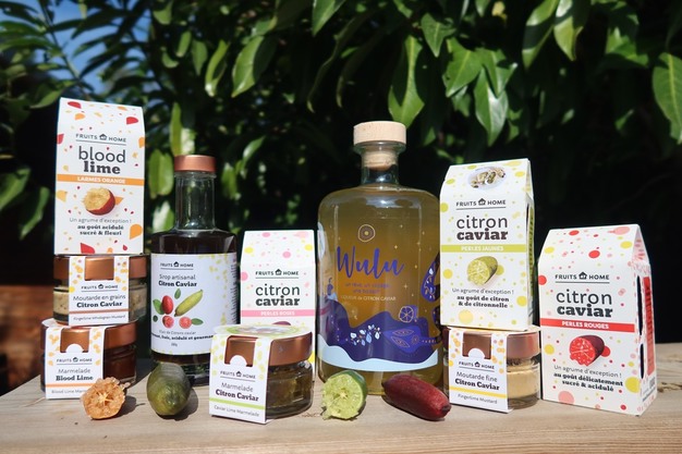 « Fruits at Home commercialise près de 5 tonnes par an et assure un approvisionnement continu toute l'année grâce à une offre multi origines : Australie, France (Var, Corse et Ardèche), Espagne, Italie et Guatemala », précise la société qui propose 3 variétés de citron caviar (vert, rose et rouge) mais également du Bloodlime, un fruit issu du croisement entre un citron caviar et une mandarine australienne, disponible de juin à août (Australie) et en novembre (Italie). En parallèle, Fruits at Home a développé une gamme d'épicerie fine : marmelades, moutardes, sirop et liqueur de citron caviar (Wulu-la), disponible chez Grand Frais et sur son site internet.