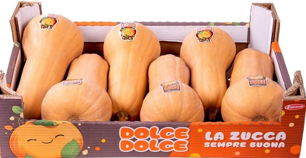 Les courges sont vendues sous la marque Dolce Dolce dans des cartons personnalisés. « C'est un emballage qui plaît et attire l'attention, car il est très soigné et reflète la norme de notre groupe. Nous sommes surpris par la forte demande d'octobre et des premiers jours de novembre. En fonction de l'évolution des commandes dans les semaines à venir, nous saurons combien de temps nous aurons le produit disponible. »