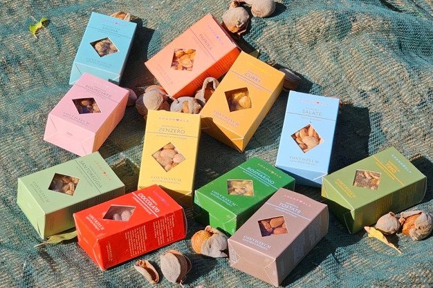 Convicinum propose différents types d'emballages pour répondre aux différents segments du marché. Pour le commerce de détail, les amandes décortiquées biologiques sont disponibles en formats de 120 g, 500 g et 1 kg. Pour le commerce de gros et la distribution traditionnelle, les amandes décortiquées sont disponibles en sacs de 1, 5 et 10 kg. L'offre est complétée par une ligne gourmet en boîtes personnalisées de 120 g, destinée au marché haut de gamme et à l'exportation.
