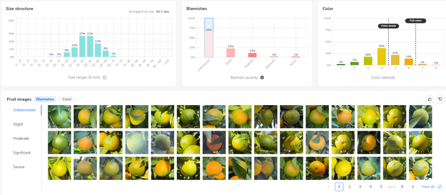 En 2025, Agrucorse prend le virage de l'intelligence artificielle pour le suivi du calibre et de la coloration des fruits dans les vergers. « Une première dans l'agrumiculture corse », précise la société. D'ordinaire, après la nouaison, les clémentines sont mesurées pour suivre leur grossissement. « Ce sont des milliers de fruits qui sont mesurés tout au long de l'année avec un pied à coulisse dans les vergers », confie une technicienne de Terre d'Agrumes, « et c'est tout autant de valeurs qui doivent être manuellement analysées ». Un travail fastidieux mais indispensable pour anticiper les volumes de chaque calibre. Mais cette année la société a choisi d'expérimenter une application développée par la start-up Aerobotics, capable, à partir de simples clichés pris dans les vergers, d'analyser le calibre, la coloration et les éventuels défauts de milliers de clémentines. A partir de toutes ces données, l'outil trace une courbe de grossissement des fruits, semaine après semaine, qui évolue jusqu'à prédire le calibre de ces derniers au moment de la récolte.