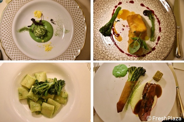 © Giancarlo Fabbri | FreshPlaza.frQuelques-unes des propositions gastronomiques créées avec le Bimi comme ingrédient lors du dîner au Mirabelle