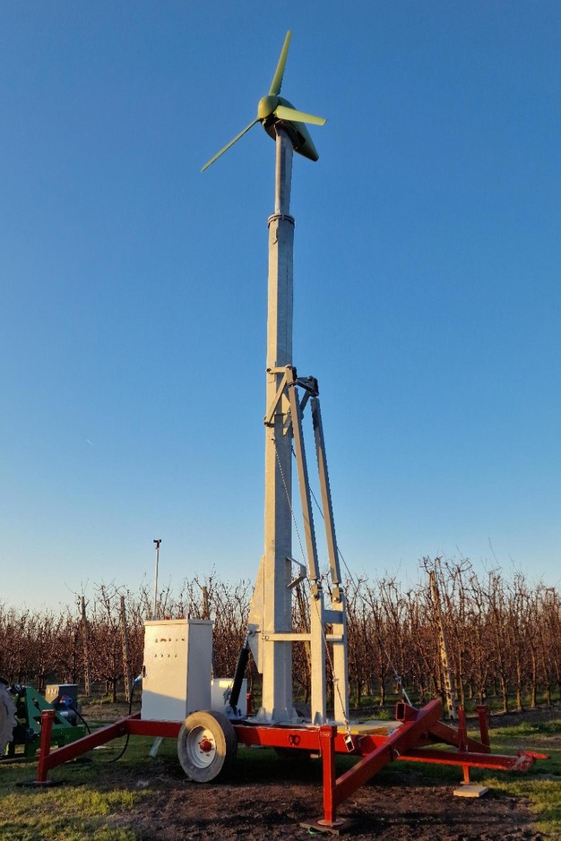 « Pour la nouvelle saison également, le marché confirme son intérêt pour notre version mobile du ventilateur Antibrine 3-22C, installé sur une remorque. Nous avons conçu le seul ventilateur antigel mobile de 10 m de haut. Il s'agit du même modèle que monté sur un socle avec fondations, offrant les mêmes performances en termes de couverture que les ventilateurs fixes, mais avec la flexibilité des appareils mobiles. Cette conception spécifique nous a également permis de créer un système qui est très compacte et une fois fermée, peut être facilement déplacée dans les rangs. »