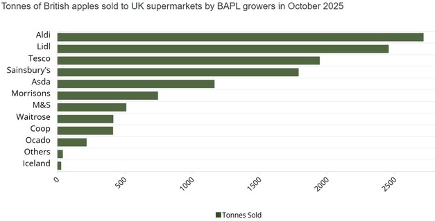 De nouvelles données fournies par les producteurs britanniques de pommes et de poires montrent que plusieurs supermarchés britanniques ont fortement soutenu les pommes britanniques en octobre 2025, avec de nettes différences entre les détaillants en ce qui concerne le volume total vendu et la part des pommes britanniques par rapport à la part de marché de l'épicerie.
