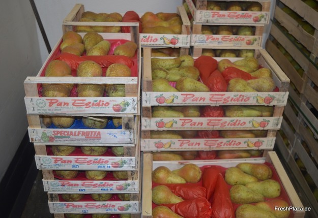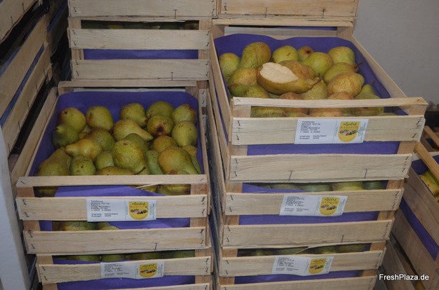 En parallèle des pommes, l'ensemble de la gamme européenne de poires est désormais disponible. Conference et Comice proviennent principalement des Pays-Bas, tandis que la variété Novembra, entre autres, est achetée dans la région badoise. Selon Koch, les poires régionales ne sont disponibles que pendant une brève période et tout au plus jusqu'à la fin de l'année. L'entreprise se concentre ensuite sur les lots italiens. « Nous proposons quatre variétés : Abate Fetel, Williams verte, Williams rouge et Santa Maria. Bien que l'Abate Fetel reste la référence des poires italiennes, son prix a fortement augmenté ces dernières années, en raison de rendements plus faibles. Pour la Williams, la variété verte reste dominante, même si les prix sont similaires. Quant à la Santa Maria, elle s'impose nettement, surtout auprès de la clientèle de restauration. »