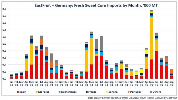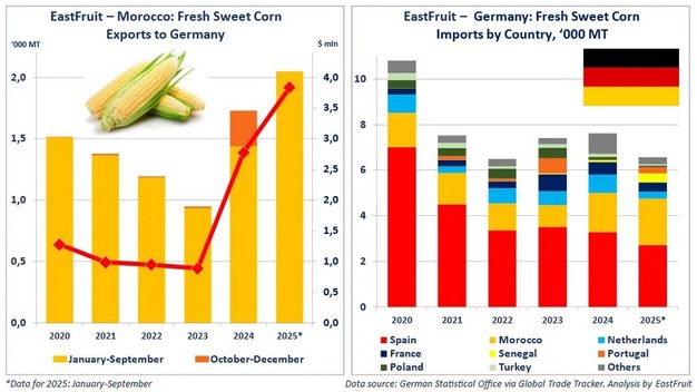 Le Maroc poursuit l'essor de ses exportations de maïs doux frais vers l'Allemagne pour la deuxième année consécutive, selon EastFruit.
