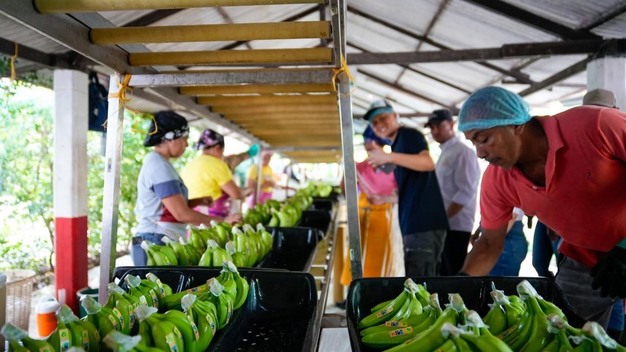 Dans la municipalité de Zona Bananera, dans le département de Magdalena, quatre coopératives de petits producteurs - Coobafrio, Asobanarcoop, Emprebancoop et Coomulbanano - consolident un modèle de production qui, malgré les défis structurels du secteur, maintient sa présence sur les marchés européens et cherche à obtenir une plus grande reconnaissance pour les bananes cultivées par les familles paysannes. Actuellement, ces organisations regroupent environ 600 petits producteurs et gèrent environ 1 800 hectares, avec une offre combinée d'environ 400 conteneurs par an.