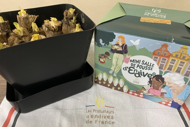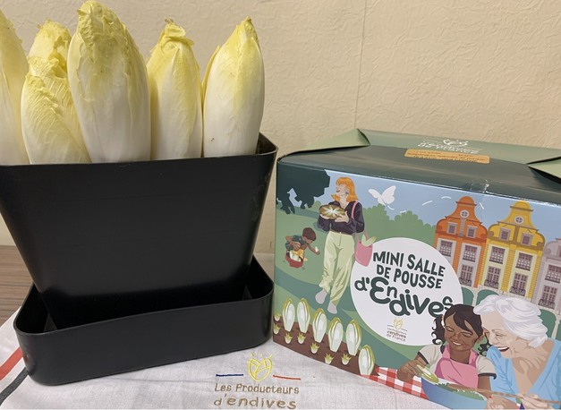 Chaque kit est composé de substrat, entre 12 et 15 racines d'endives ainsi qu'un couvercle permettant de protéger les endives de la lumière. Le principe est simple : le kit reste en salle de classe (un par classe) et ne nécessite qu'une surveillance du niveau d'eau dans la coupelle. Placé à température ambiante il suffit de patienter 3 semaines pour récolter les pousses d'endives. « Les élèves peuvent ainsi suivre la croissance jour après jour et récolter leur propre production. Et la quantité est largement suffisante pour organiser une dégustation avec une classe d'une trentaine d'élèves », souligne Pierre Varlet. Car le kit propose aussi 2 idées recettes.