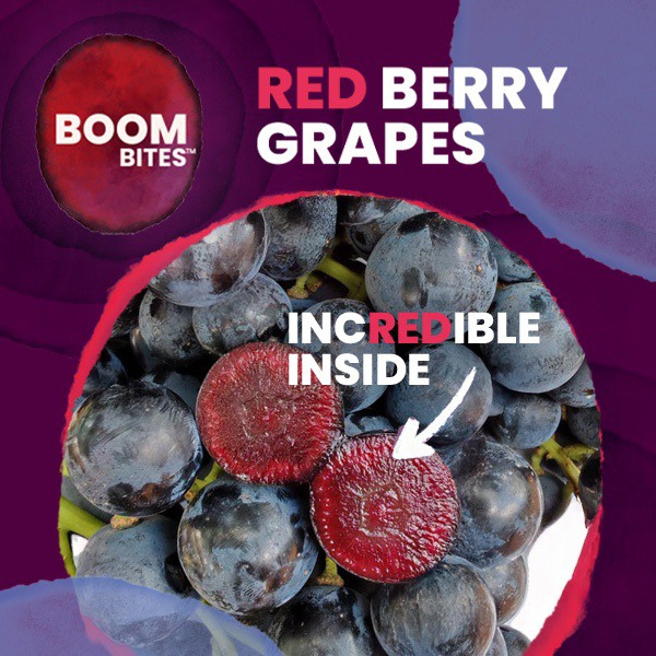 Les Boombites™ Red Berry Grapes sont le résultat d'une collaboration entre la société britannique Bloom Fresh (Hall 8.2, Stand A-80) et certains des principaux producteurs mondiaux de raisin de table. Le développement de cette nouvelle variété de fruit a pris plus de dix ans, et elle a non seulement un goût délicieux, mais contient également des polyphénols, connus pour leurs propriétés antioxydantes et anti-inflammatoires.