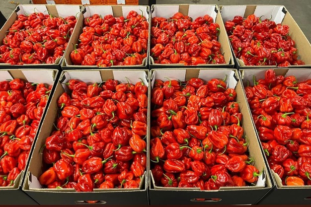 Piments Habanero rouges, prêts à être exportés par avion