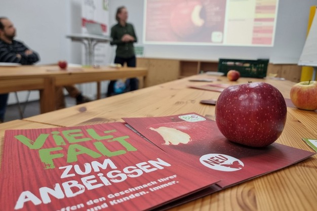 Au début de la semaine 4, les Bio Stars® ont fait leur entrée dans une sélection de magasins bio du sud de l'Allemagne, principalement dans le Bade-Wurtemberg et en Bavière. L'objectif de ce nouveau concept de commercialisation est d'introduire de manière raisonnée sur le marché de nouvelles variétés prometteuses de pommes biologiques. « Dans la sélection variétale, il existe d'excellentes pommes (souvent récentes) parfaitement adaptées à l'agriculture biologique : robustes, nécessitant moins de produits phytosanitaires et offrant d'excellentes qualités gustatives. Le véritable défi réside toutefois dans la commercialisation, car les ventes reposent largement sur des noms de variétés bien établis et l'espace en rayon est limité. Résultat : ces nouveautés peinent souvent à trouver leur place », explique Annika Leistikow de FÖKO e.V., partenaire principal de cette nouvelle initiative.