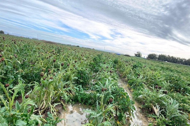 « Les champs d'artichauts sont saturés d'eau et difficiles à gérer. Le récent passage du cyclone Harry peut être défini comme la goutte d'eau qui a fait déborder le vase d'une saison déjà fortement compromise. Les cultures ont subi les dégâts combinés du vent et de la pluie. L'impraticabilité des champs empêche l'accès aux moyens mécaniques, ce qui nous oblige à recourir à des solutions technologiques alternatives : des drones sont utilisés pour la fertilisation, tandis que les opérations de récolte sont effectuées lentement et strictement à pied. La situation phytosanitaire reste grave : l'excès d'eau provoque la mort des plantes par asphyxie, mais le problème vient aussi de l'humidité et de la chaleur qui favorisent les maladies fongiques. »