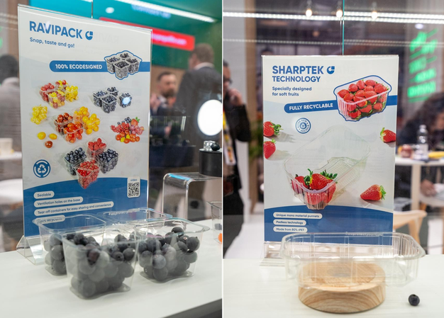 En parallèle, nous avons mis l'accent sur le développement d'emballages pratiques et nomades. Des formats plus adaptés aux nouveaux modes de consommation, plus simples à utiliser et plus faciles à vendre. Loin d'être un phénomène de mode, le snacking nomade, « on-the-go », est désormais un comportement répandu : on recherche des formats plus faciles à ouvrir et à refermer, des solutions pratiques pour consommer partout, en mobilité, avec une notion de réduction du gaspillage. Nous avons ainsi proposé une large gamme de boîtes à charnières et de barquettes operculables, conçues pour protéger et valoriser les fruits et légumes à différents moments de consommation. Avec Ravipack Snap & Go, par exemple, l'innovation est intégrée dans les gestes du quotidien : ce sont des petites barquettes operculables en rPET, pensées pour les fruits rouges, les tomates cerises et les fruits secs, qui sont sécables en quatre parties : ce design en portion aide à réduire le gaspillage alimentaire et rend la consommation encore plus simple et intelligente... voire ludique ! Autre exemple, la gamme DISTRIPACK de shakers en rPET à ouverture facile propose un système exclusif de bec verseur, un couvercle « flip-top » refermable et une ventilation optimisée ; un format facile à tenir en main, idéal pour les envies de fruits tels que les myrtilles ou les mélanges au cours de la journée : on peut ainsi déguster à tout moment de la journée un snacking sain, toujours bon et toujours frais.