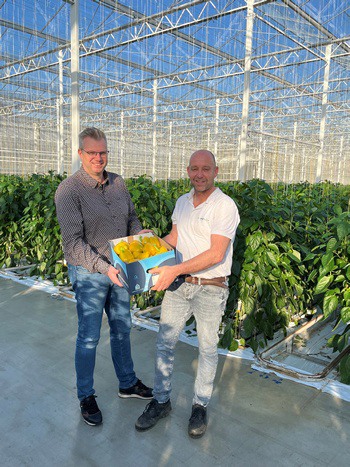 © Harvest House« Chez Harvest House, nous attendons avec impatience la nouvelle saison des poivrons. Nous démarrons avec beaucoup d'énergie et démarrons cette saison une collaboration avec Kwekerij De Westhoek. Cette semaine, dans la serre, nous avons déjà vu les premiers poivrons jaunes, prêts à être récoltés. Le rythme va s'accéler dans la période à venir », déclare Marco Bergman, directeur commercial Paprika chez Harvest House. Robert Spruijt, de Kwekerij De Westhoek, ajoute : « Nous attendons la saison de récolte avec impatience. Cette semaine, nous avons rempli notre première colis. »