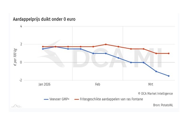 Les prix reflètent cette situation. PotatoNL a récemment coté entre 1 et 2 € les 100 kg pour les pommes de terre fourragères, alors que les prix des pommes de terre d'industrie sont à peine plus élevés. L'excédent se déplace en volume vers l'alimentation animale et la biofermentation, les coûts de commercialisation incombant de plus en plus aux producteurs, notamment en raison de l'augmentation des coûts de transport.