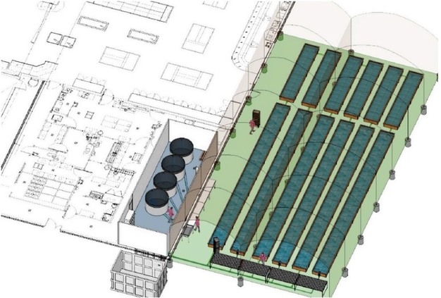 L'aquaponie, qui associe l'élevage et la culture hors-sol, fonctionne en circuit fermé : les poissons produisent des nutriments qui nourrissent les plantes. Les plantes, à leur tour, filtrent l'eau, qui est ensuite réutilisée pour les poissons. Le tout avec une consommation en eau réduite et une production continue / Sur la photo plan de la ferme aquaponique du Super U de Labastide-Saint-Pierre