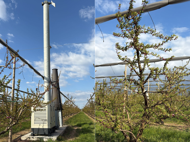 © EARL Les ChambresAnthony Oboussier s'était préparé il y a deux semaines en déployant ses moyens de lutte contre le gel, notamment une tour antigel installée après l'épisode de gel de 2021 ainsi que des chaufferettes. « Finalement, je n'ai pas eu besoin de les mettre en route », explique-t-il. La Vallée du Rhône a en effet été marquée par un vent du nord en discontinu pendant une dizaine de jours. « On l'a échappé belle, on a eu beaucoup de chance. On a frôlé les 0 degrés, mais le vent a empêché le gel de se déposer. Ce matin encore 15 à 20 km/h de vent ont suffi à maintenir les températures en positif », explique Anthony Oboussier. A date les prévisions annoncent désormais une remontée progressive des températures.