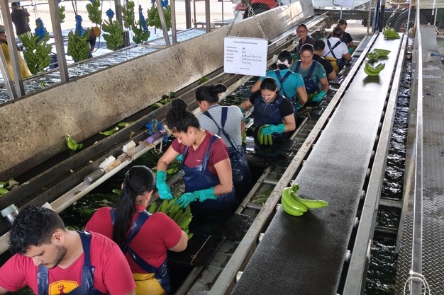 Le Grupo San Alberto a été fondé en 1979 sur des terres de cacao reconverties, à la suite de l'introduction par le gouvernement costaricain de crédits destinés à encourager la culture de la banane. Aujourd'hui, les familles Pastor, Lacombe et Herrera sont toujours aux commandes. En 2025, une quatrième exploitation, appelée Fama, a été ajoutée à Siquirres, portant la superficie totale de production à environ 1 000 hectares. Chaque exploitation gère sa propre chaîne de conditionnement et sa propre structure administrative, mais le Grupo San Alberto joue le rôle de colonne vertébrale. « Nous pouvons négocier », explique M. Pastor. « Nous réalisons des économies d'échelle lorsqu'il s'agit d'acheter des intrants. »