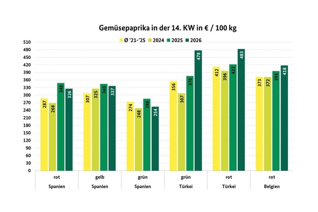 © BLESelon le BLE, les cotations des produits espagnols, néerlandais et belges ont globalement suivi une tendance baissière, malgré des hausses ponctuelles qui ont freiné les achats à Hambourg. À Munich, les opérateurs ont tenté d'écouler les stocks espagnols via des promotions. À Francfort, les poivrons rouges pointus d'origine nationale se négociaient à 8,00 € le kg, contre 7,00 € le kg pour les poivrons en bloc. À Munich, la campagne allemande a débuté avec les premiers poivrons verts.