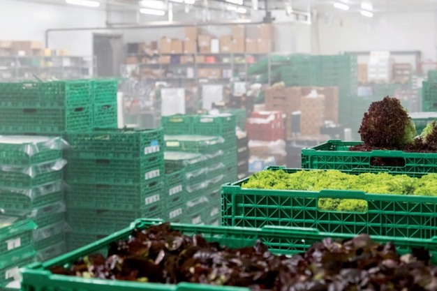 Salades fraîches dans l'entrepôt frigorifique de Caviezel Giovanettoni AG