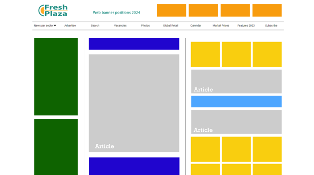 FreshPlaza est le principal lieu de rencontre en ligne de l'industrie internationale des fruits et légumes frais. Nos sites Web sont mis à jour quotidiennement avec les dernières nouvelles qui nous parviennent de partout dans le monde. Cinq fois par semaine, l'équipe de FreshPlaza publie un magazine en ligne en plusieurs langues.