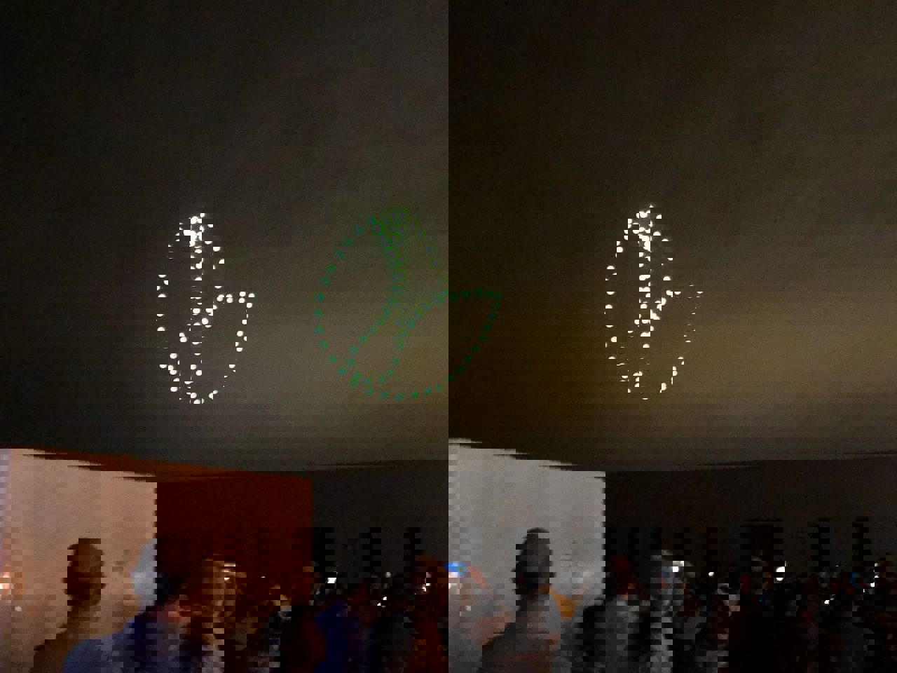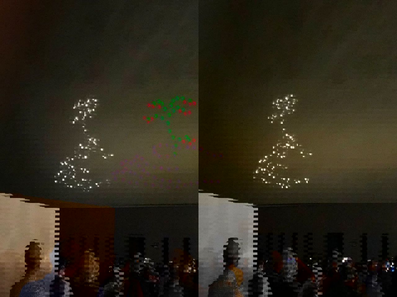 Une belle surprise fut organisée par l'entreprise, une jolie danse de lumière dans le ciel hypnotisa l'assemblée l'espace d'un instant