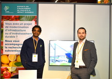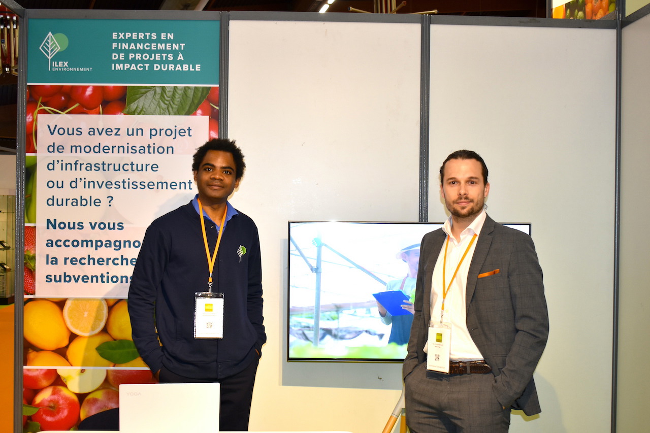 Kevin Singer et Georges-Antoine Ngoue sur le stand de l'entreprise Ilex Environnement, qui propose des solutions de financement pour des projets en relation avec l'efficacité énergétique et le développement durable