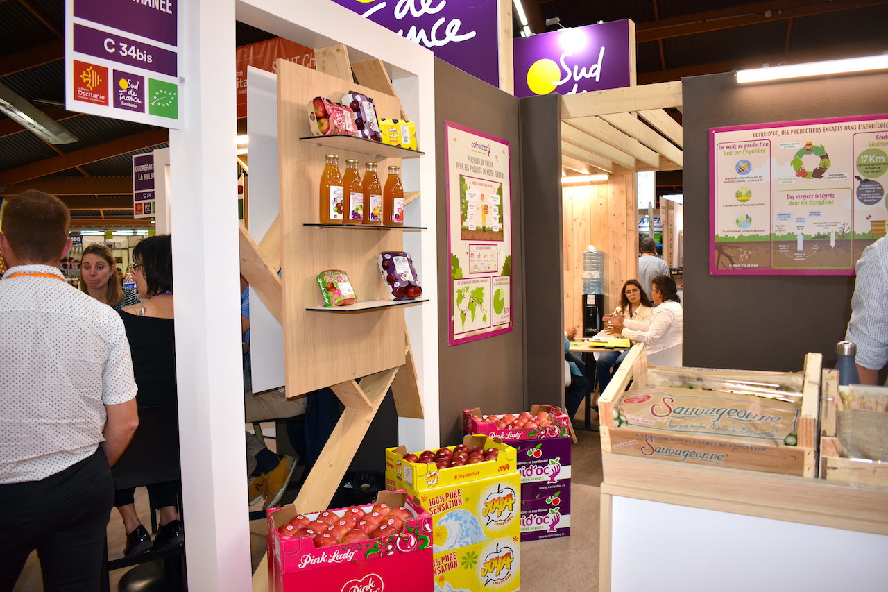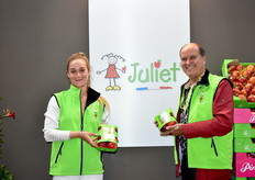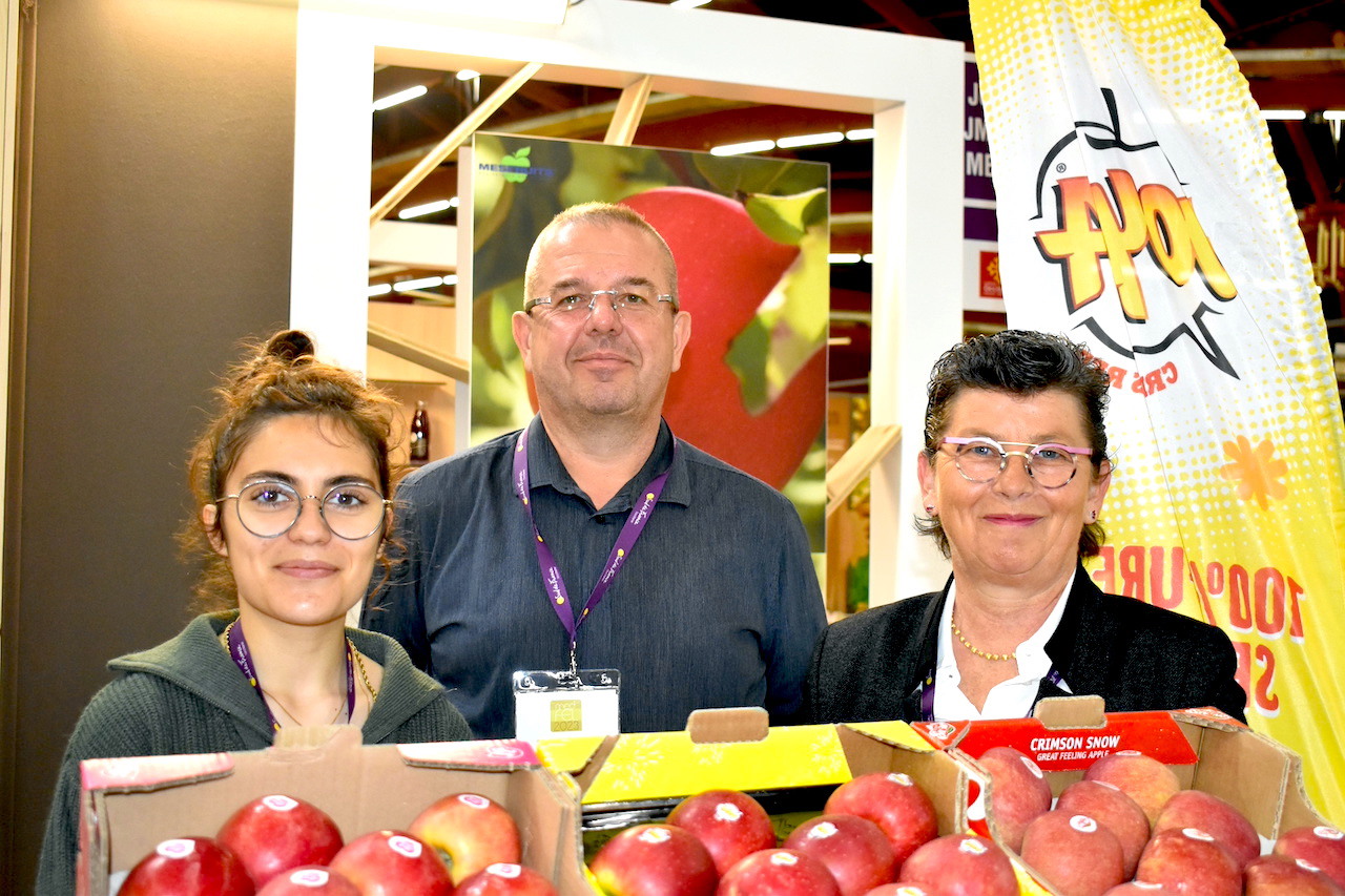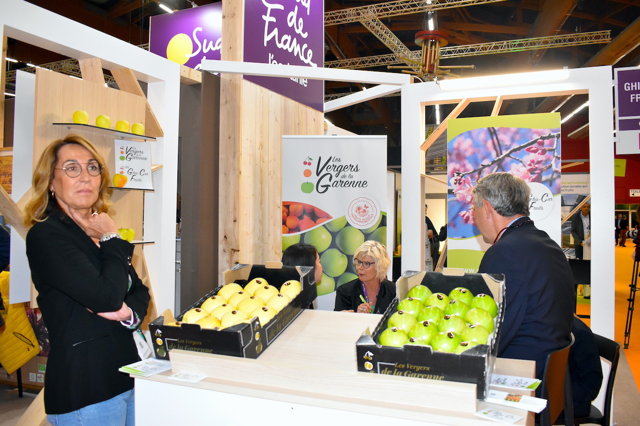 Alice Gianola et Jean-Noël Carles, sur le stand de Cardell pour représenter la fameuse Juliet ! Pomme 100 % bio qui vient de fêter ses 20 ans