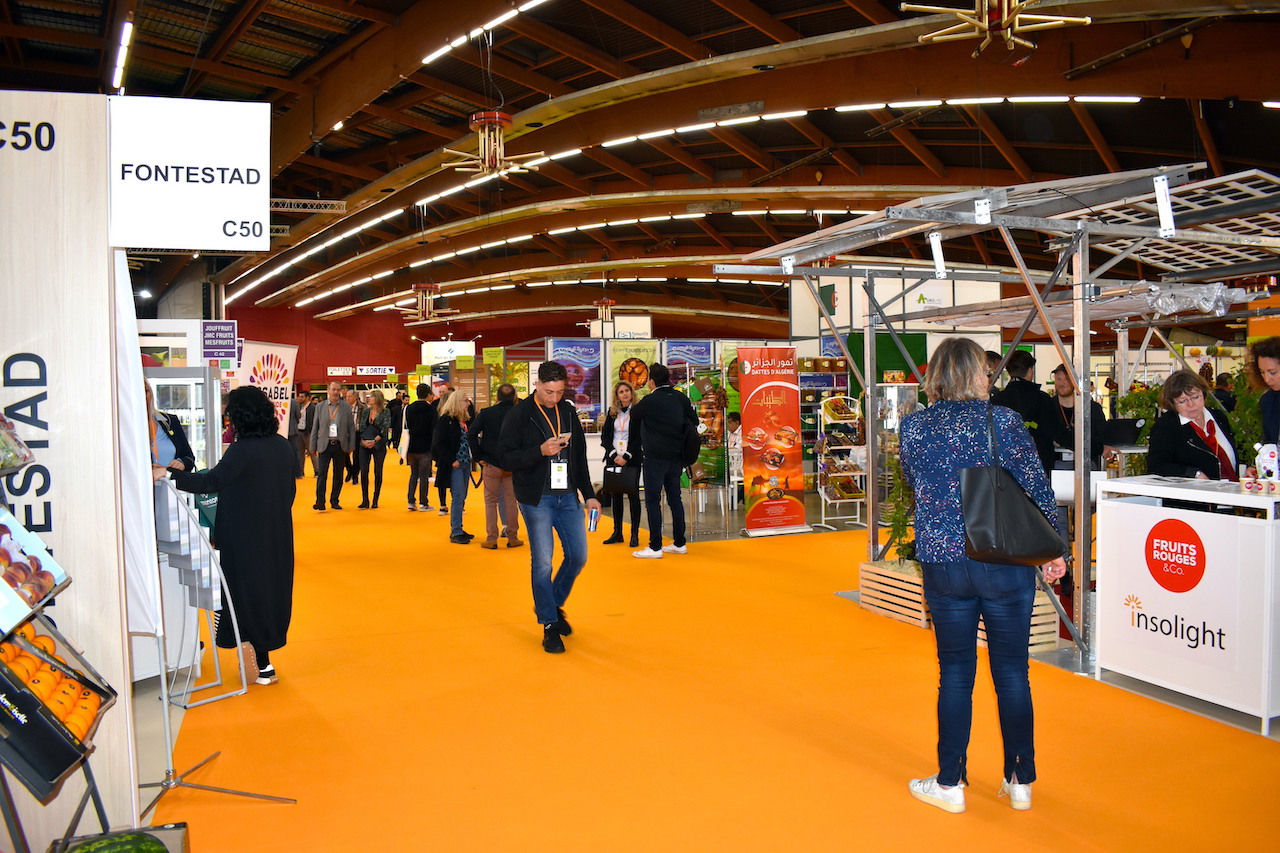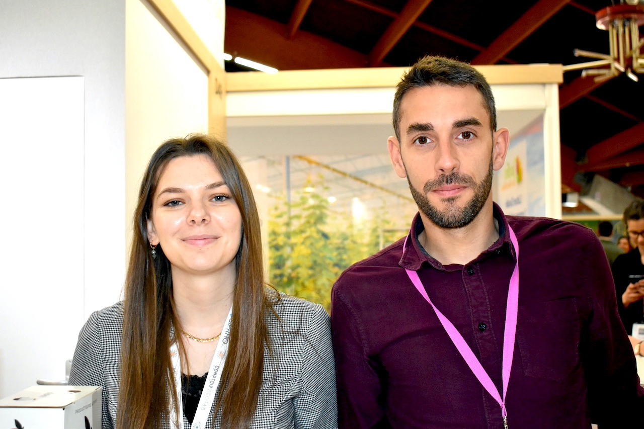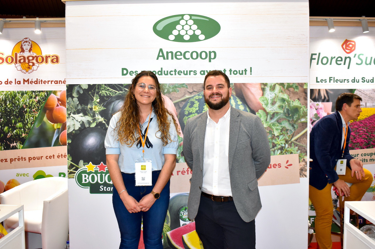 Amélie Lapeyre et Andreu Mir, venus représenter Anecoop, qui partage un stand avec ses filiales Solagora (bio) et Floren'sud (fleurs)