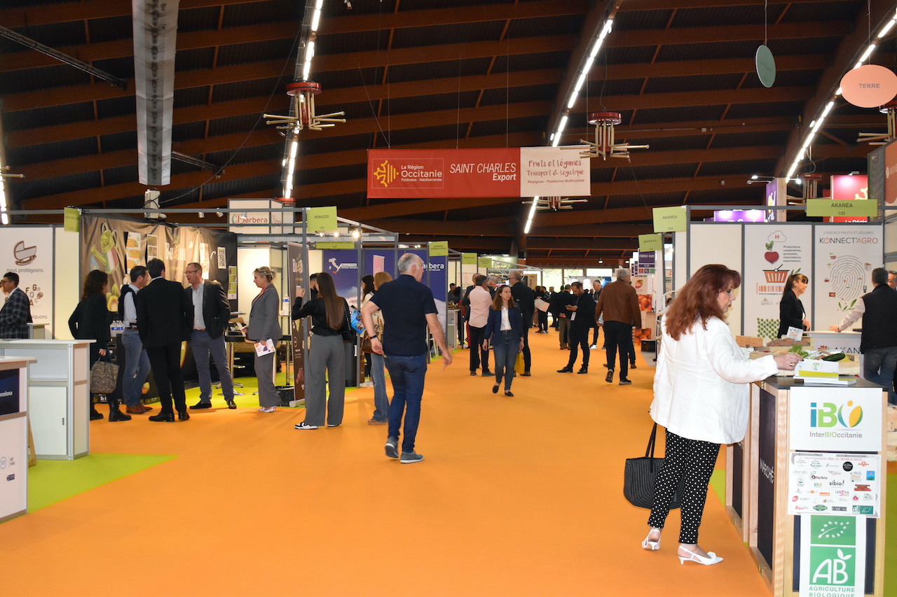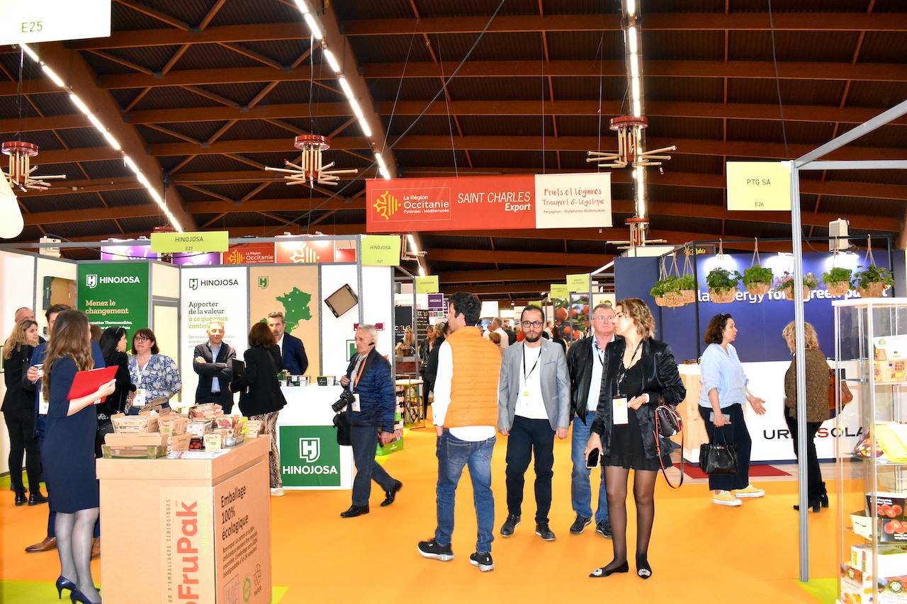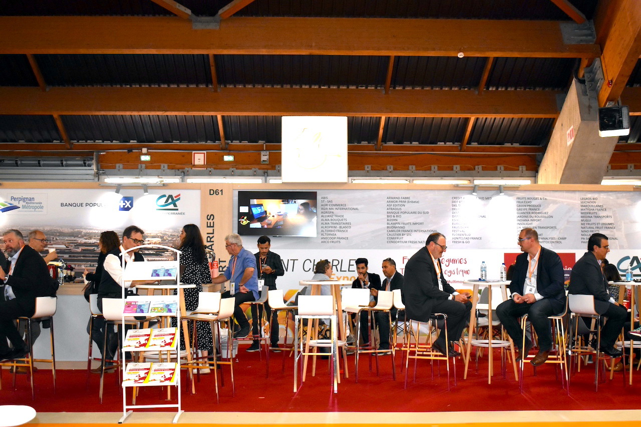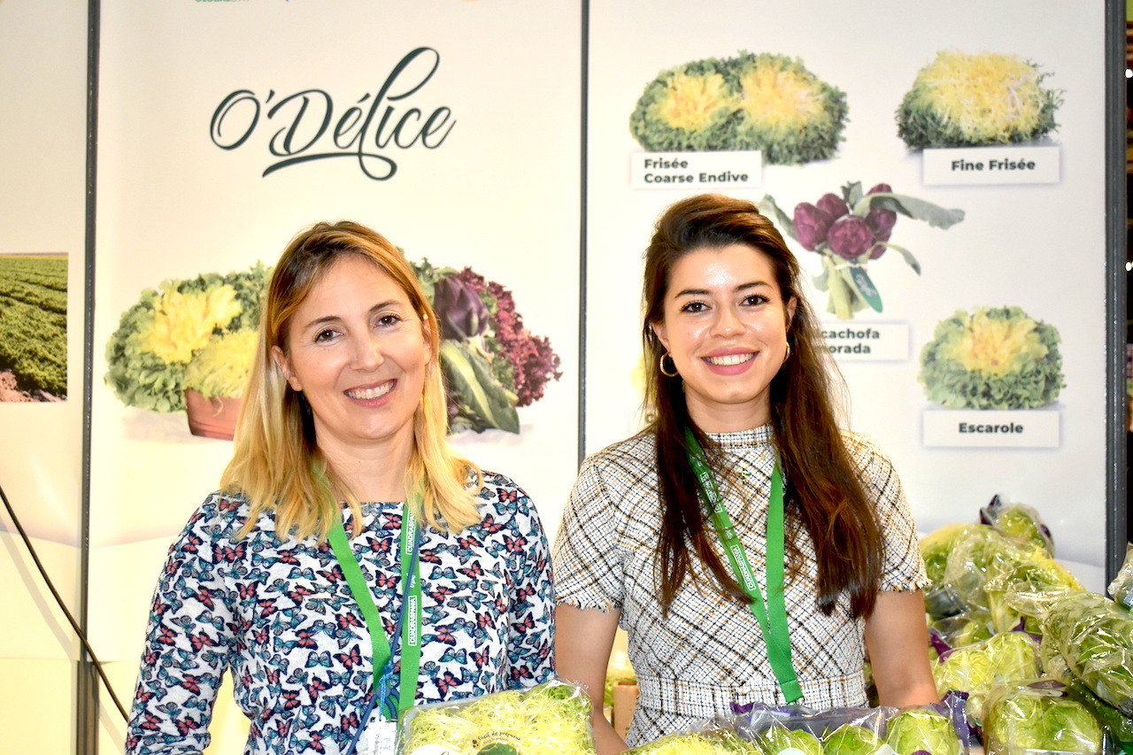 Amélie Lapeyre et Andreu Mir, venus représenter Anecoop, qui partage un stand avec ses filiales Solagora (bio) et Floren'sud (fleurs)