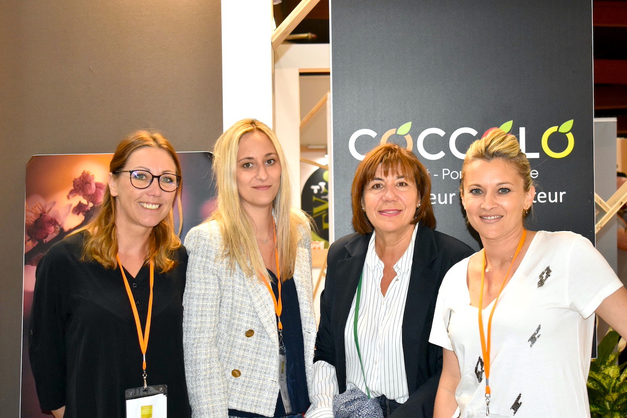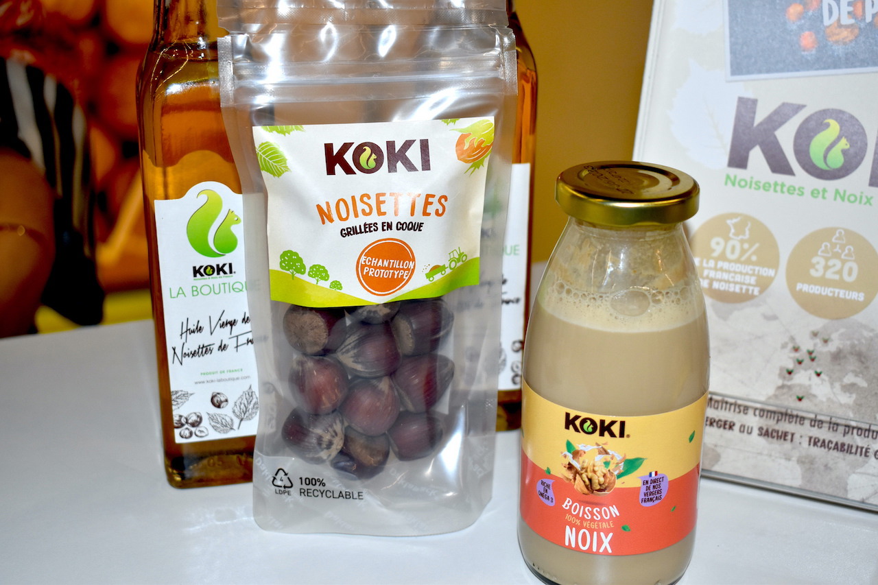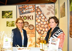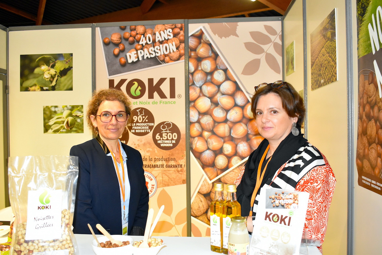 Estelle Grossenbacher et et Cécile Biers sur le stand Koki pour Unicoque venues présenter deux nouveaux produits : la boisson végétale au lait de noix et les noisettes grillées en coques