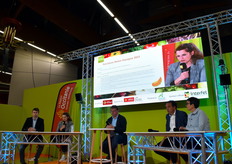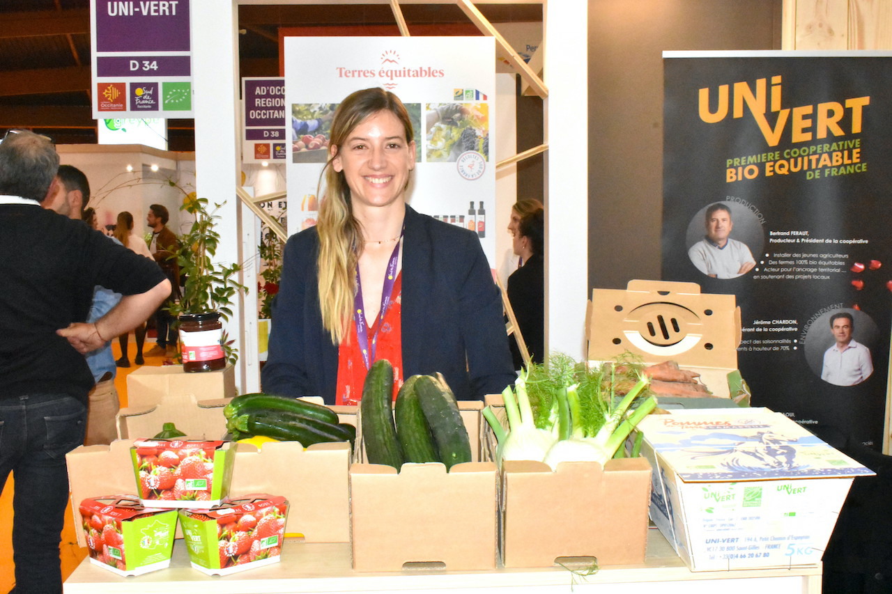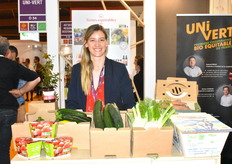Virginie Terra, sur le stand d'Hinojosa, spécialisé dans l'emballage en carton ondulé pour fruits