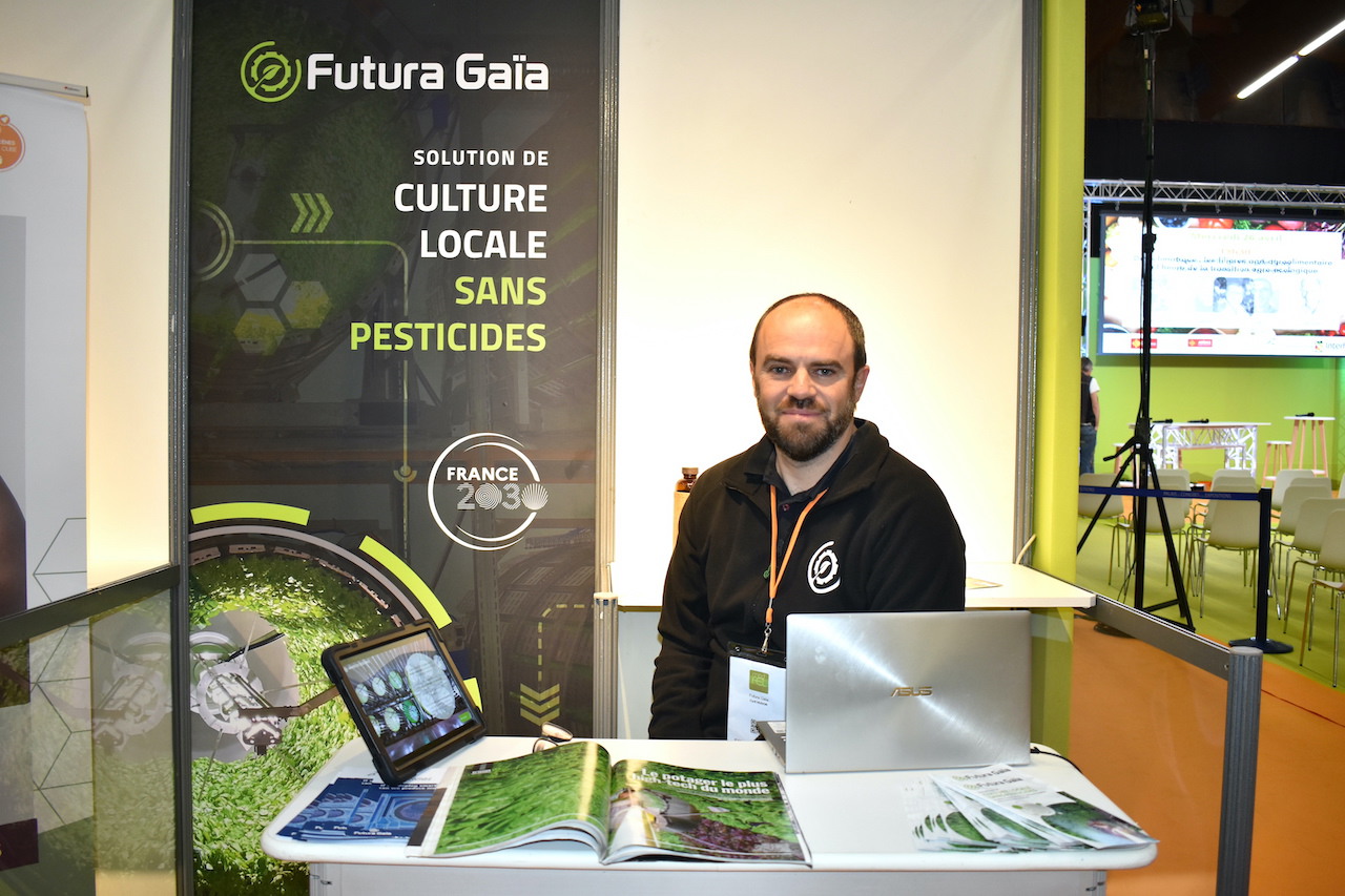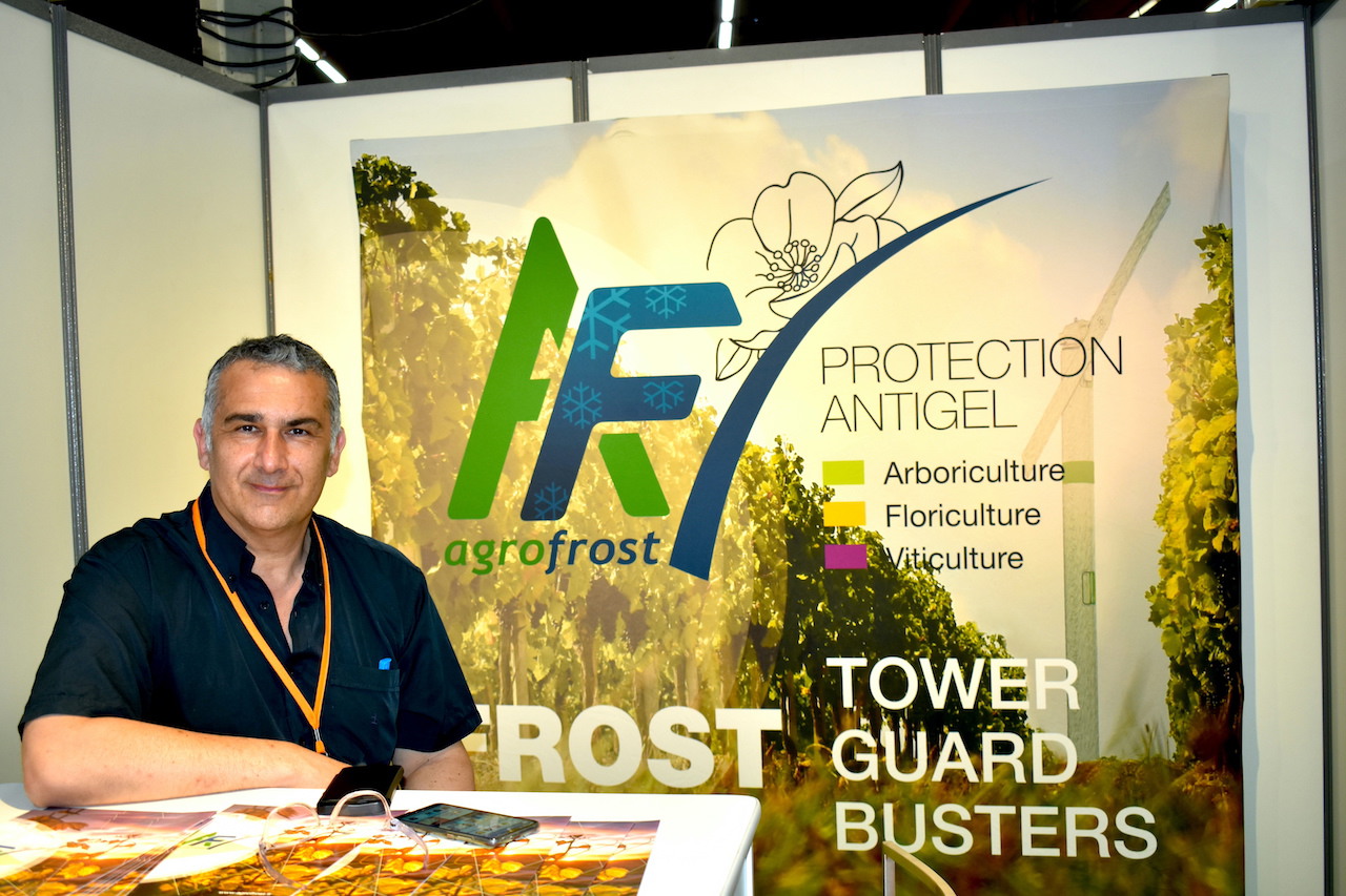 Yann Sellecchia sur le stand d'Agrofrost, spécialiste dans la lutte antigel
