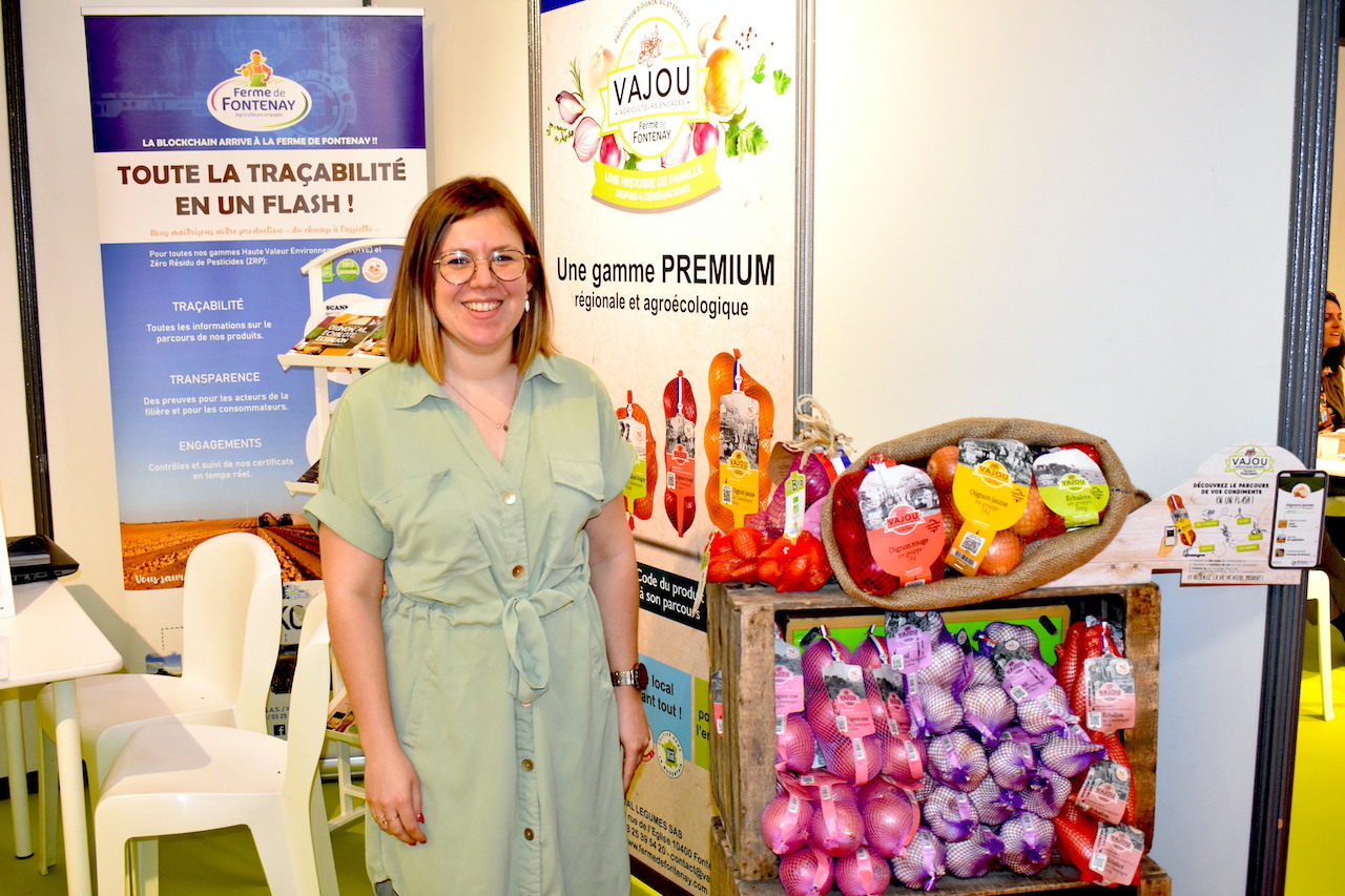 Camille Jaccon, sur le stand de la Ferme de Fontenay pour présenter leur gamme d'allium